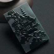 墨翠深山藏古寺翡翠挂件 尺寸:59-36-5.3毫米