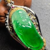 冰阳绿逍遥佛 翡翠吊坠 裸石尺寸34.2*15.5*5