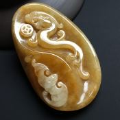糯冰黄翡龙牌挂件 尺寸61-37-10毫米