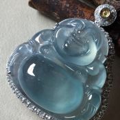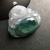 冰种飘花佛公 佛翡翠吊坠 白金扣 尺寸33-37-8.5毫米