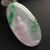 糯冰种春带彩翡翠吊坠 尺寸86-47-9毫米