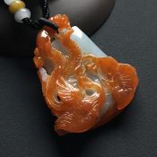 巧雕红翡龙凤呈祥吊坠 尺寸:48-42-10毫米