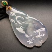 冰玻种雪花棉事业有成 翡翠挂件 裸石尺寸32.5~17.6mm