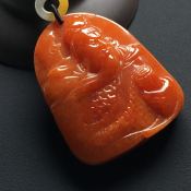 巧雕红翡忠义关公 翡翠吊坠 尺寸:57-46-11.7毫米