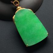 冰种阳绿 无事牌翡翠吊坠18k金镶嵌 尺寸:54-26.5-7*裸石40.8-26.5-6毫米