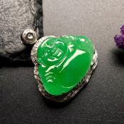 冰种晴绿佛公 佛翡翠吊坠 白金扣 尺寸22-26-7毫米