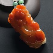 巧雕红翡招财貔貅 翡翠吊坠 尺寸:55-25-25.6毫米