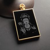 冰种墨翠观音18k金镶边 翡翠挂件