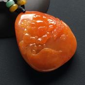 巧雕红翡 鸟语花香吊坠 尺寸:50-41-14.8毫米