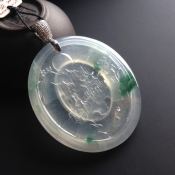 冰种飘绿英明神武翡翠吊坠 尺寸:52-34-6.2毫米