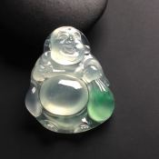 冰糯种弥勒佛 翡翠吊坠 干净清爽 完美无瑕