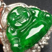 阳绿佛公完美色辣 佛翡翠吊坠 18k金伴钻:性价比