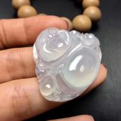 冰种飘花 宝宝佛 佛翡翠吊坠 尺寸:54-41-4毫米