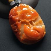 巧雕红翡连年有余 翡翠吊坠 尺寸:57-41-13毫米