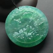 冰种满绿 大好河山翡翠吊坠 尺寸:52-7.5毫米