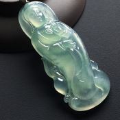 冰种晴底观音 翡翠挂件 尺寸:66-25-6.5毫米