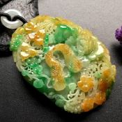 黄加绿鸟语花香 翡翠吊坠 尺寸: 58-42-13mm