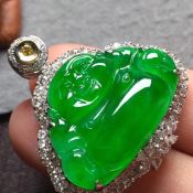 冰种阳绿佛公翡翠吊坠 寸16.5*23.5*4整体28.7*27.8*8.8
