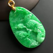 满绿英明神武翡翠吊坠 18K金扣 尺寸45-30-7毫米