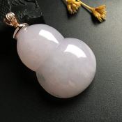 糯冰种春带彩 葫芦翡翠吊坠 18K金扣 尺寸49-32-17毫米