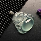 冰种笑口常开 翡翠吊坠 尺寸: 32-32-8mm