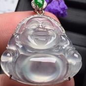冰种佛公 翡翠吊坠 真金钻镶嵌