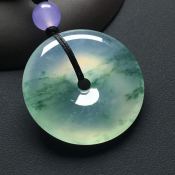 冰种飘花翡翠吊坠 翡翠平安扣吊坠 尺寸:34.3-6.3毫米