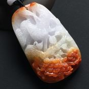 巧雕红翡松鹤延年翡翠吊坠 尺寸:65-39-12.8毫米