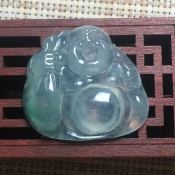 冰种蓝紫笑佛 翡翠吊坠 尺寸32-21-7毫米