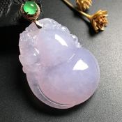 冰种紫罗兰 葫芦翡翠吊坠 18K金扣 葫芦旁附有瑞兽 尺寸41-32-14毫米