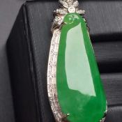 冰种阳翠悠然自得翡翠吊坠 白金镶嵌 尺寸55-38-9.5毫米