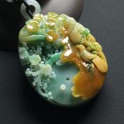 巧雕黄加绿喜上眉梢 翡翠吊坠 尺寸:57-44-12.4毫米