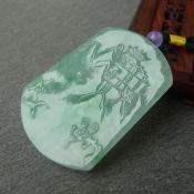 冰种飘绿 渊源流长翡翠吊坠 规格:54.3*40.5*4.6mm