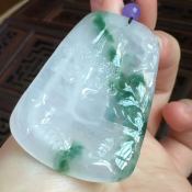 冰种飘绿山水牌翡翠吊坠 完美无纹裂 尺寸58.6*39.6*5