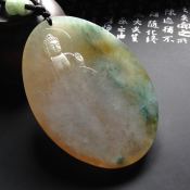 黄加绿百财翡翠吊坠 尺寸50-38-17毫米