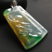 冰种黄加绿江山如画翡翠挂件 尺寸52-32-5.8毫米