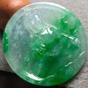 冰种阳绿山水牌翡翠吊坠 尺寸39*30.8*4