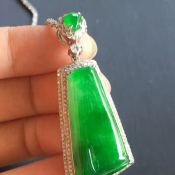 冰种阳绿翡翠吊坠 尺寸50*5.5