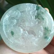 缅甸天然A货翡翠冰种飘花龙牌吊坠 尺寸51.6*6.4、克重32.84