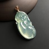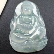 糯冰种飘翠大日如来翡翠吊坠 尺寸65-50-9毫米