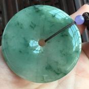 冰糯种飘花翡翠平安扣吊坠 完美无纹裂 尺寸49.4*4.7