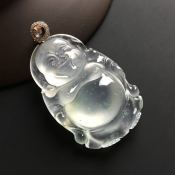 冰种雪花棉飘花笑佛 翡翠吊坠 尺寸37-26-10毫米