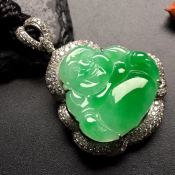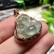 冰种晴水佛公 佛翡翠吊坠 18K金伴钻镶嵌 裸石尺寸:16.5*18.8*5.3mm