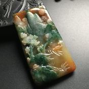 三彩山水牌 翡翠吊坠 尺寸68-37-8毫米