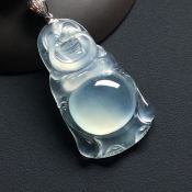 冰飘花布袋佛 翡翠吊坠 完美饱满 种老细腻