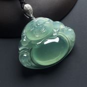 冰种晴水笑佛 翡翠挂件 尺寸:25.5-32-7毫米
