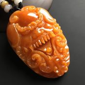 冰种红翡瑞兽呈祥翡翠吊坠 尺寸65-44-13毫米