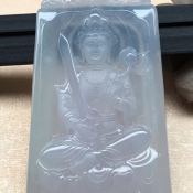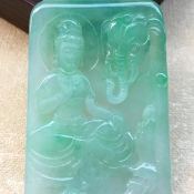 老坑料冰种阳绿普贤菩萨翡翠吊坠