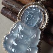 老坑料冰种紫底虚空藏菩萨 冰透起光 翡翠吊坠