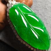 冰阳绿叶子 翡翠挂件 裸石尺寸36*17.8*4